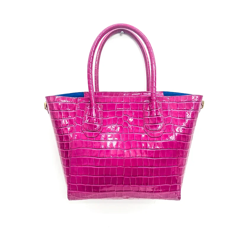 Materials: fushia embossed cowhide , gold hardware, azure suede lining